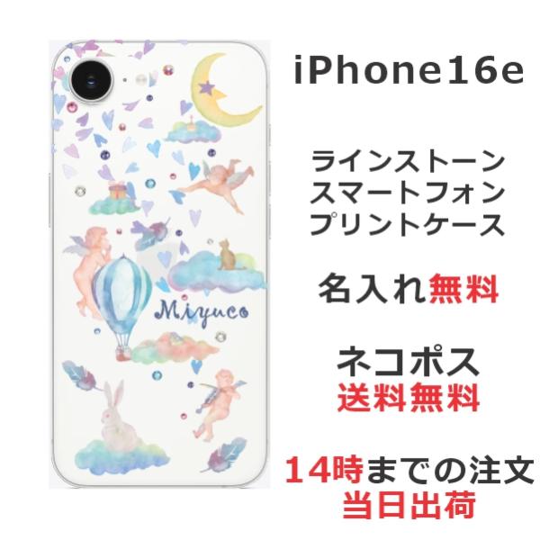 iPhone16e アイフォン16e らふら 名入れ スマホケース ラインストーン エンジェルスカイ