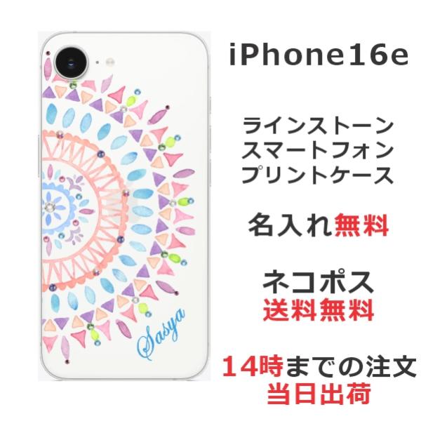 iPhone16e アイフォン16e らふら 名入れ スマホケース ラインストーン エスニック