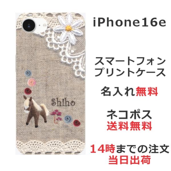 iPhone16e アイフォン16e らふら 名入れ スマホケース コットンレース風 ポニー