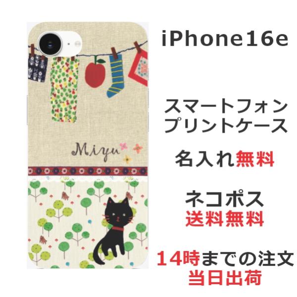 iPhone16e アイフォン16e らふら 名入れ スマホケース 黒猫 洗濯物