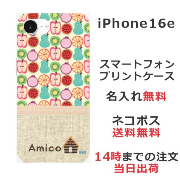 iPhone16e アイフォン16e らふら 名入れ スマホケース 北欧デザイン フルーツ カラフル