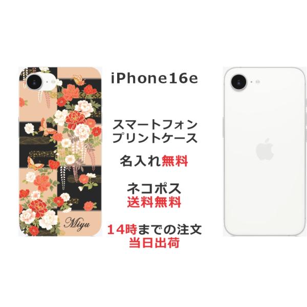 iPhone16e アイフォン16e らふら 名入れ スマホケース 和柄 花 牡丹蝶