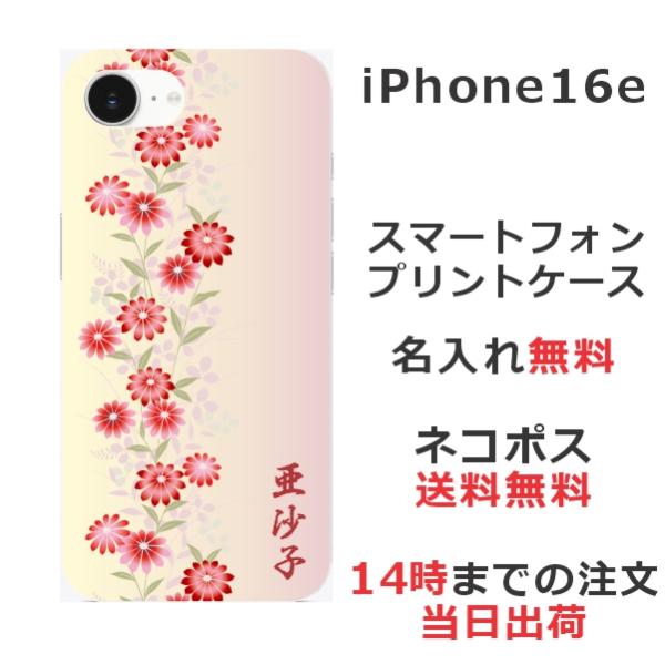 iPhone16e アイフォン16e らふら 名入れ スマホケース 和柄 花 撫子