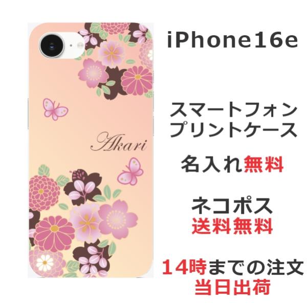 iPhone16e アイフォン16e らふら 名入れ スマホケース 和柄 花 春蝶花
