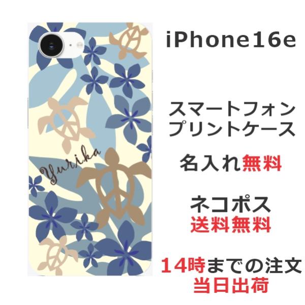 iPhone16e アイフォン16e らふら 名入れ スマホケース ハワイアン ネイビー ホヌ