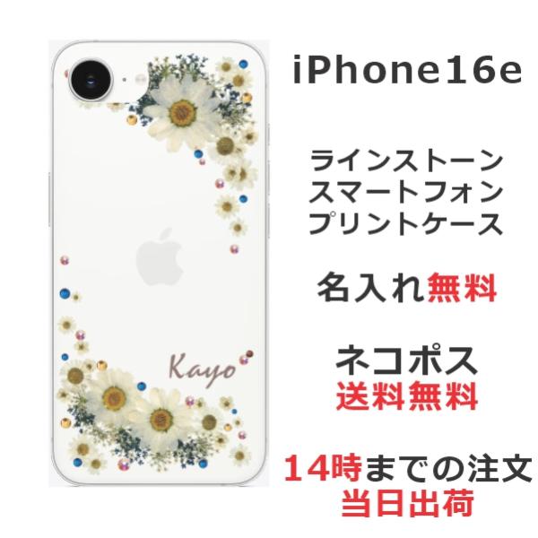 iPhone16e アイフォン16e らふら 名入れ スマホケース ラインストーン スマホカバー 押し花風 フラワリー ホワイト
