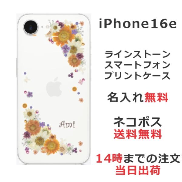 iPhone16e アイフォン16e らふら 名入れ スマホケース ラインストーン スマホカバー 押し花風 アンティークフラワー