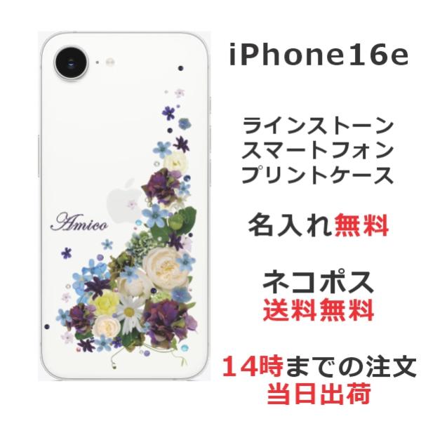 iPhone16e アイフォン16e らふら 名入れ スマホケース ラインストーン スマホカバー 押し花風 ナチュラルフラワー
