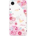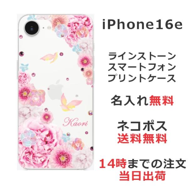 iPhone16e アイフォン16e らふら 名入れ スマホケース ラインストーン スマホカバー 押し花風 フラワーバードピンク