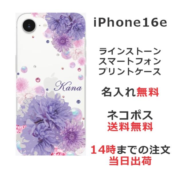 iPhone16e アイフォン16e らふら 名入れ スマホケース ラインストーン スマホカバー 押し花風 フラワーバードパープル