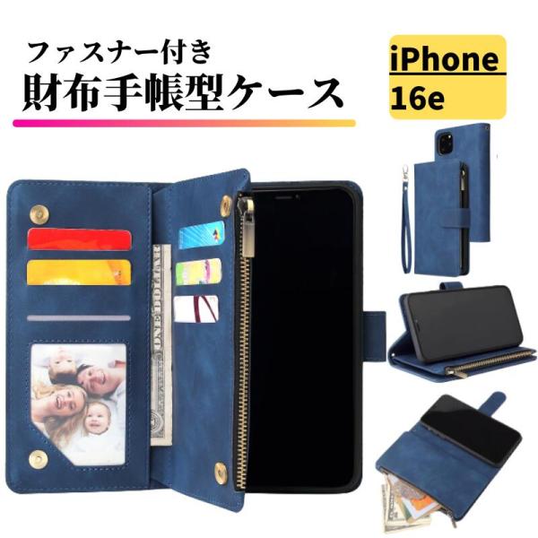 iPhone 16e ケース 手帳型 レザー お財布 シンプル カードケース 軽量 カード収納 スタンド 手帳 iPhone16e ブルー