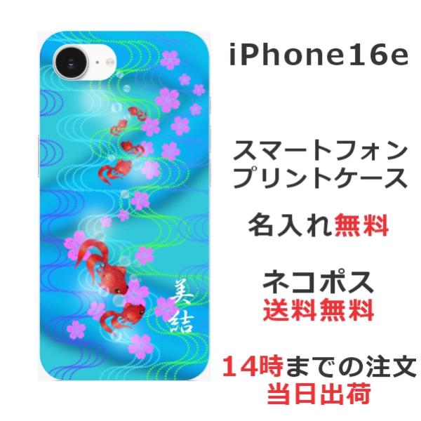 iPhone16e アイフォン16e らふら 名入れ スマホケース 和柄 金魚