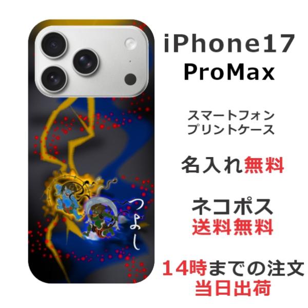 iPhone17 Pro Max アイフォン17プロマックス らふら 名入れ スマホケース 和柄 風神雷神