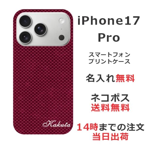 iPhone17 Pro アイフォン17プロ らふら 名入れ スマホケース カーボン レッド