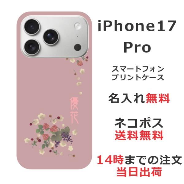 iPhone17 Pro アイフォン17プロ らふら 名入れ スマホケース 和柄 和花イチゴ