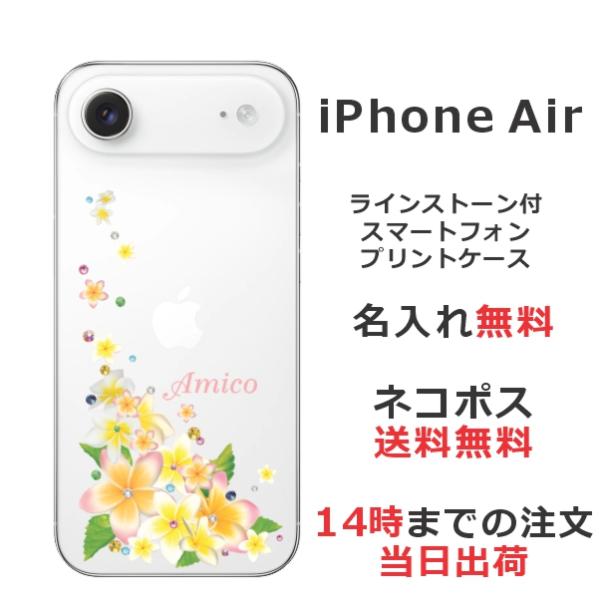 iPhone Air アイフォンエアー らふら 名入れ スマホケース ラインストーン スマホカバー 押し花風 プルメリア