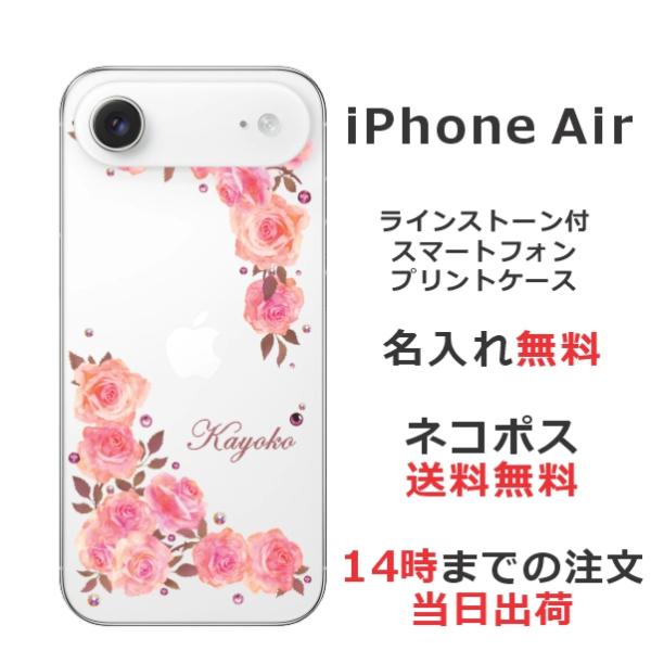 iPhone Air アイフォンエアー らふら 名入れ スマホケース ラインストーン スマホカバー 押し花風 ベビーピンク ローズ