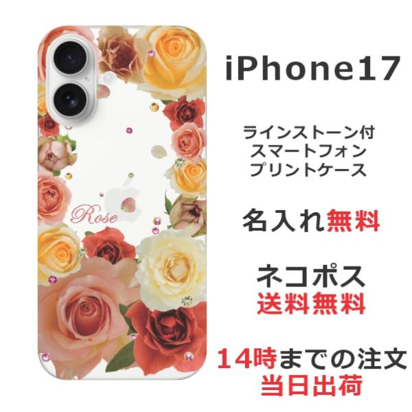 iPhone17 アイフォン17 らふら 名入れ スマホケース ラインストーン スマホカバー 押し花風 バラ