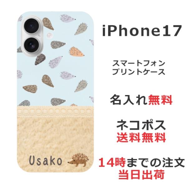 iPhone17 アイフォン17 らふら 名入れ スマホケース 北欧デザイン ハリネズミ