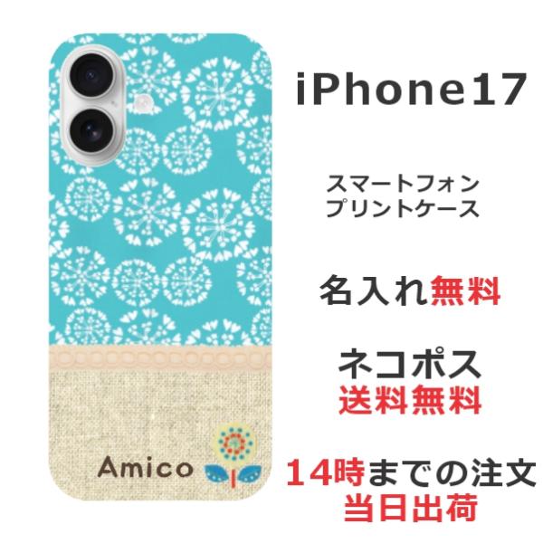 iPhone17 アイフォン17 らふら 名入れ スマホケース 北欧デザイン フラワー ブルー
