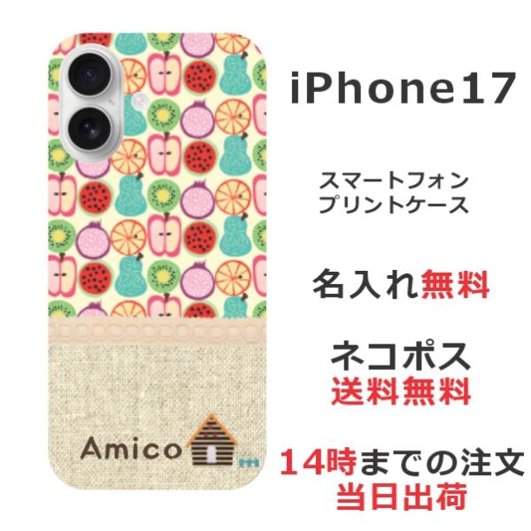 iPhone17 アイフォン17 らふら 名入れ スマホケース 北欧デザイン フルーツ カラフル
