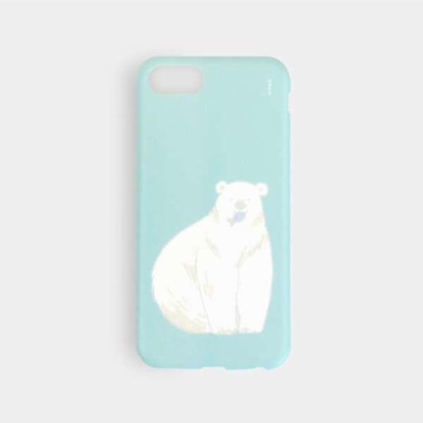 ふんわり柔らかいパステルカラーのケースに、シロクマがプリントされたデザイン、シンプルでかわいいスマホケースになります。