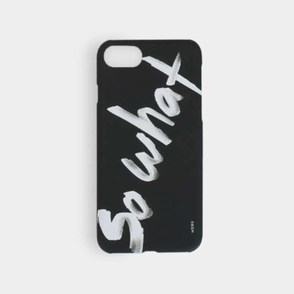 マットブラックのケースに「So What」の文字がプリントされた、シンプルで使いやすいデザイン性の高いスマホケースになります。
