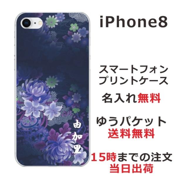iPhone8 ケース アイフォン8 カバー らふら 和柄 和花青紫グラデ