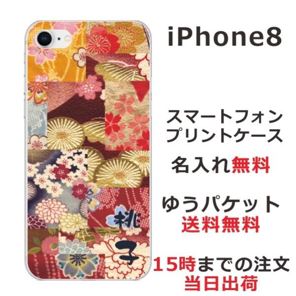 iPhone8 ケース アイフォン8 カバー らふら 和柄 着物パッチワークピンク