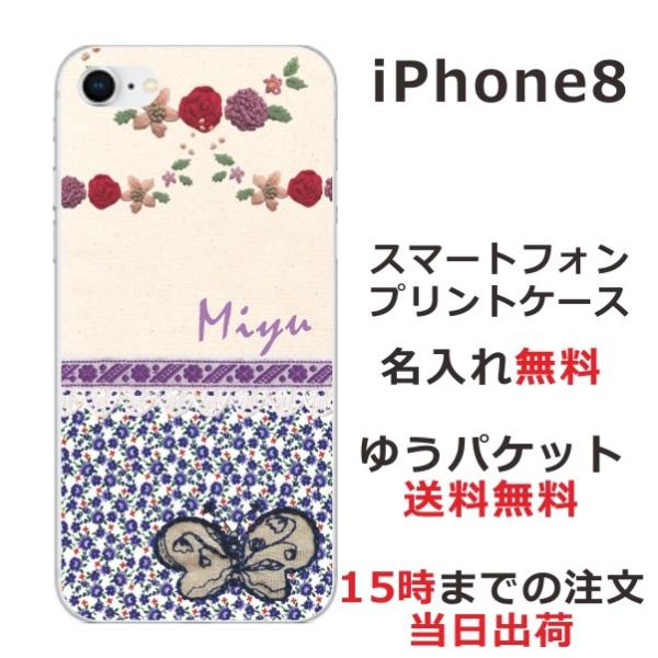 iPhone8 ケース アイフォン8 カバー らふら 蝶 パープルフラワー