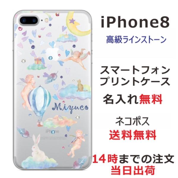 iPhone8 ケース アイフォン8 カバー ラインストーン かわいい らふら エンジェルスカイ