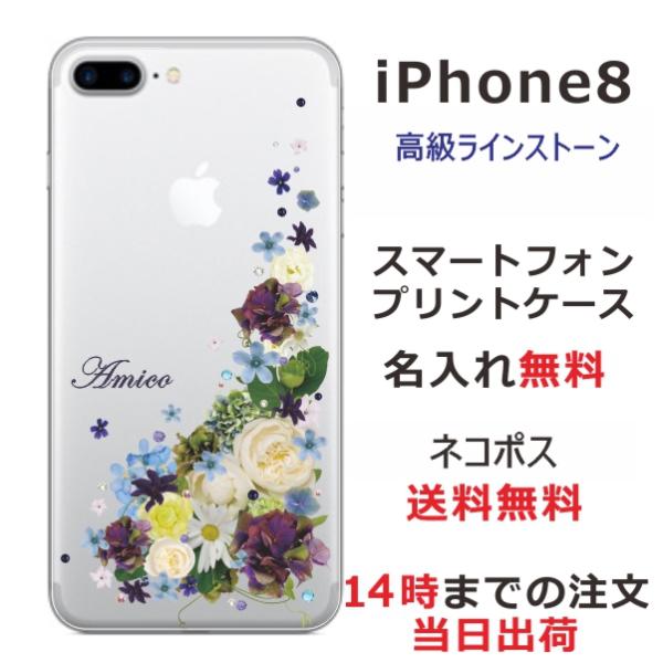 iPhone8 ケース アイフォン8 カバー ラインストーン かわいい らふら フラワー 花柄 押し花風 ナチュラルフラワー