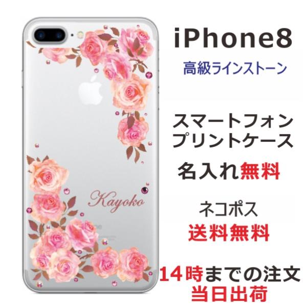 iPhone8 ケース アイフォン8 カバー ラインストーン かわいい らふら フラワー 花柄 押し花風 ベビーピンク ローズ