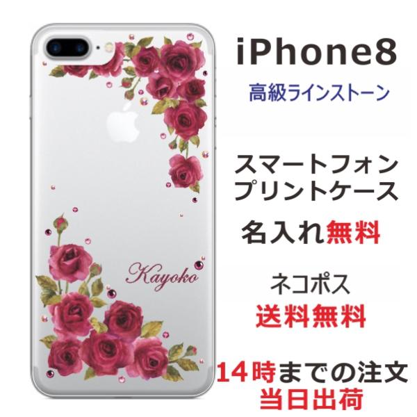 iPhone8 ケース アイフォン8 カバー ラインストーン かわいい らふら フラワー 花柄 押し花風 ダークピンク ローズ