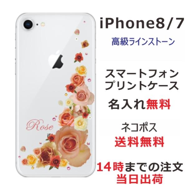 iPhone8 ケース アイフォン8 カバー ラインストーン かわいい らふら フラワー 花柄 押し花風 バラ