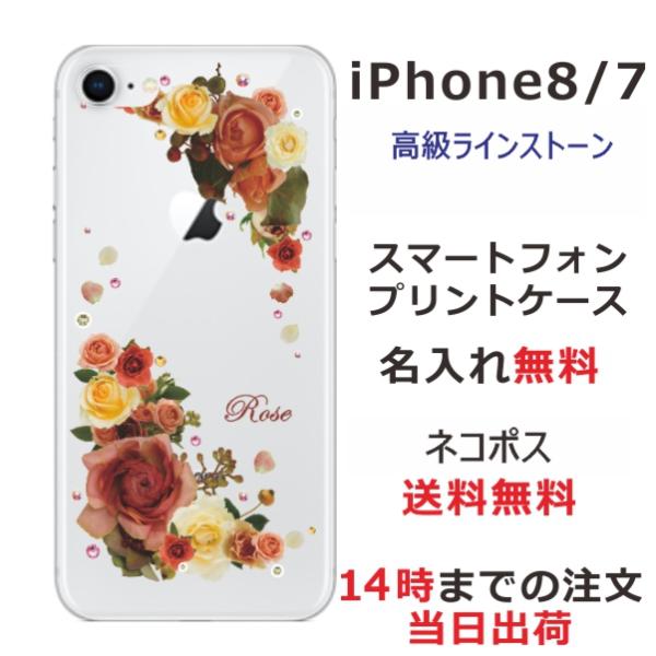 iPhone8 ケース アイフォン8 カバー ラインストーン かわいい らふら フラワー 花柄 押し花風 バラ