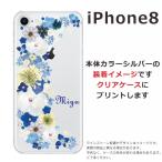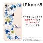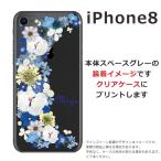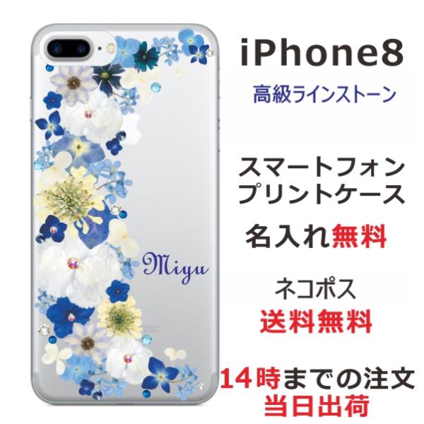 iPhone8 ケース アイフォン8 カバー ラインストーン かわいい らふら フラワー 花柄 押し花風 クレシェンドブルー