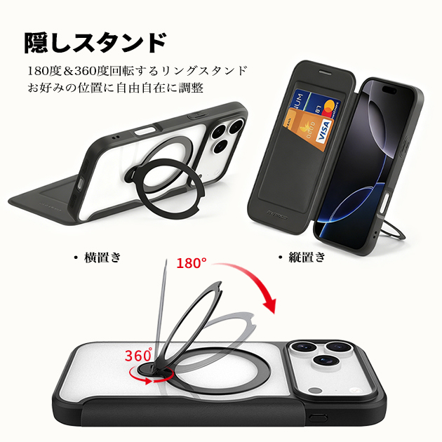 iPhone17 15 携帯 ケース 手帳型 アイホン16e スマホケース MagSafe アイフォン14 13 携帯ケース スマホ 11 12 SE iPhoneケース リング 背面クリア