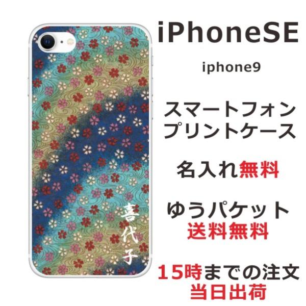iPhone SE 第2世代 らふら 名入れ スマホケース 和柄 和小花ブルーグラデ
