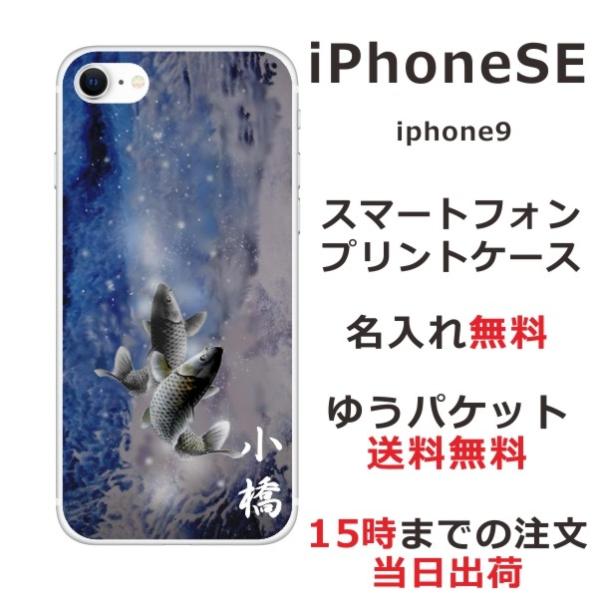 iPhone SE 第2世代 らふら 名入れ スマホケース 和柄 蒼白昇り鯉
