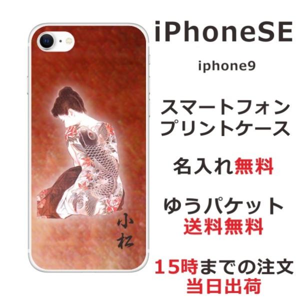 iPhone SE 第2世代 らふら 名入れ スマホケース 和柄 艶女昇鯉