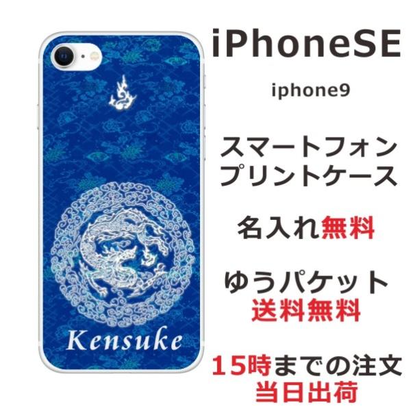 iPhone SE 第2世代 らふら 名入れ スマホケース 和柄 円龍青