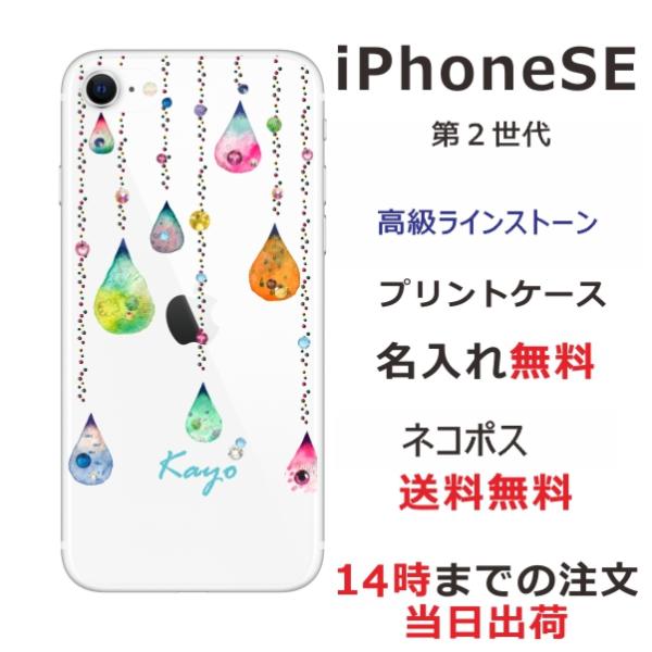 iPhone SE 第2世代 らふら 名入れ スマホケース ラインストーン カラフルしずく