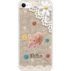 iPhone SE 第2世代 らふら 名入れ スマホケース コットンレース風 ブタ