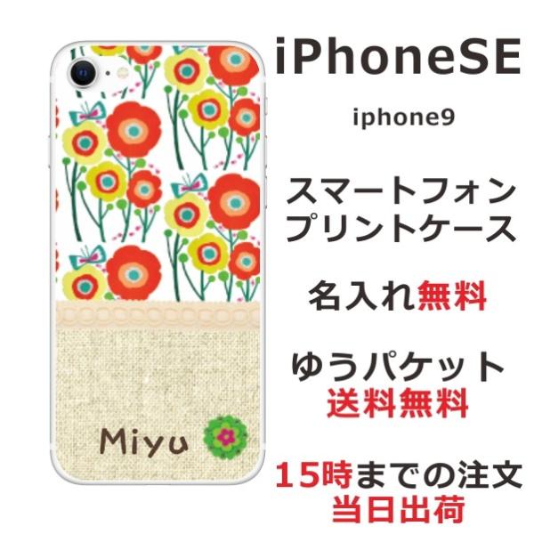 iPhone SE 第2世代 らふら 名入れ スマホケース 北欧デザイン フラワー オレンジ