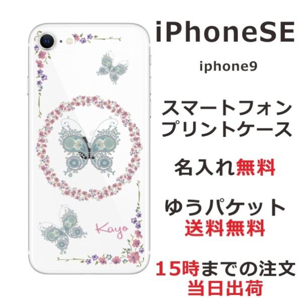 iPhone SE 第2世代 らふら 名入れ スマホケース レース バタフライ