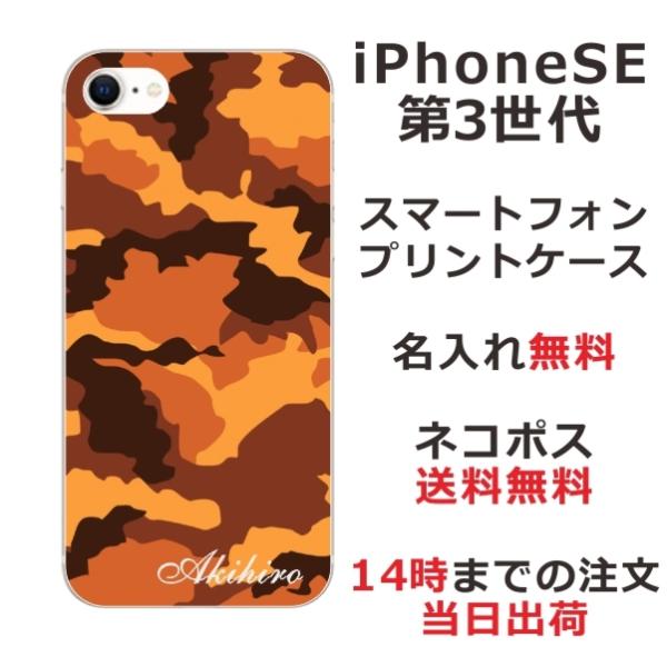 iPhone SE 第3世代 らふら 名入れ スマホケース 迷彩 ブラウン