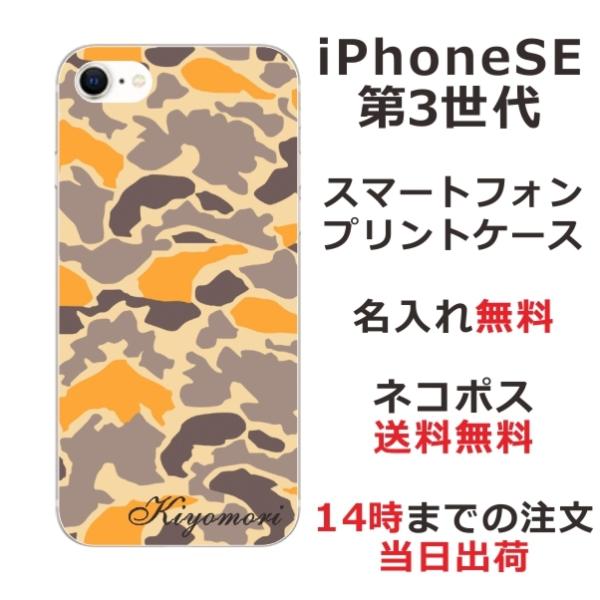 iPhone SE 第3世代 らふら 名入れ スマホケース 迷彩 オレンジ