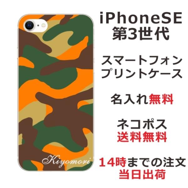 iPhone SE 第3世代 らふら 名入れ スマホケース 迷彩 オレンジ