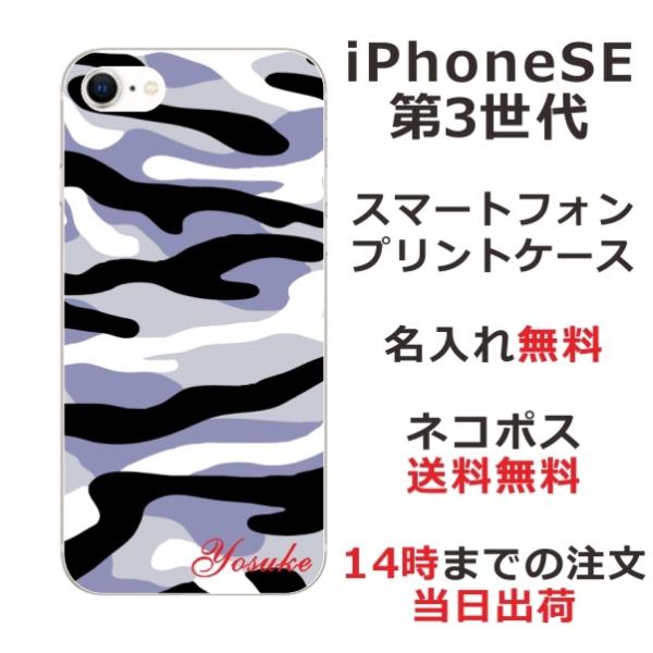 iPhone SE 第3世代 らふら 名入れ スマホケース 迷彩 モノトーン